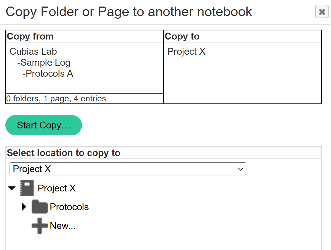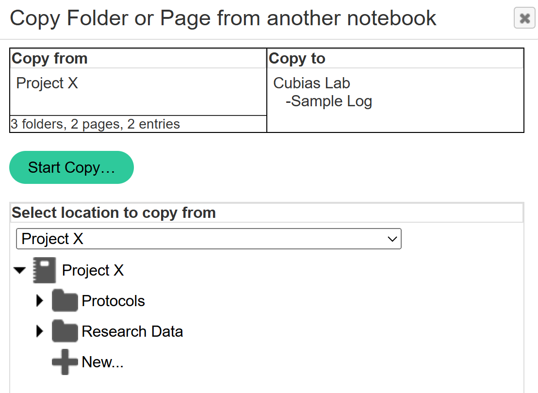 Choose the notebook you'd like to copy content from. Then, select whether you want to copy an entire folder or just a single page.