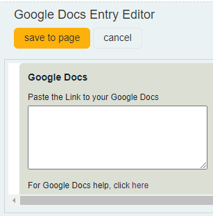 Access the Google document you would like to embed in LabArchives and select Share and Copy Link. Copy the link and paste it into the Google Docs Entry Editor. Click Save to page.