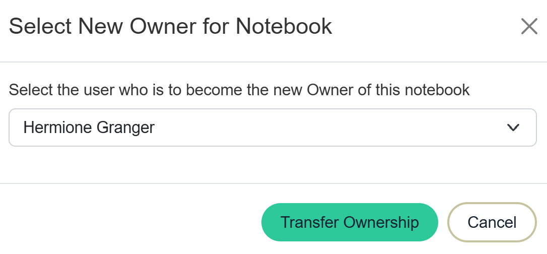 - Select Ownership Transfer to view the list of notebook members available to transfer the notebook to.