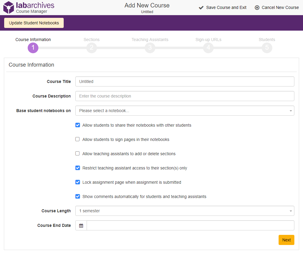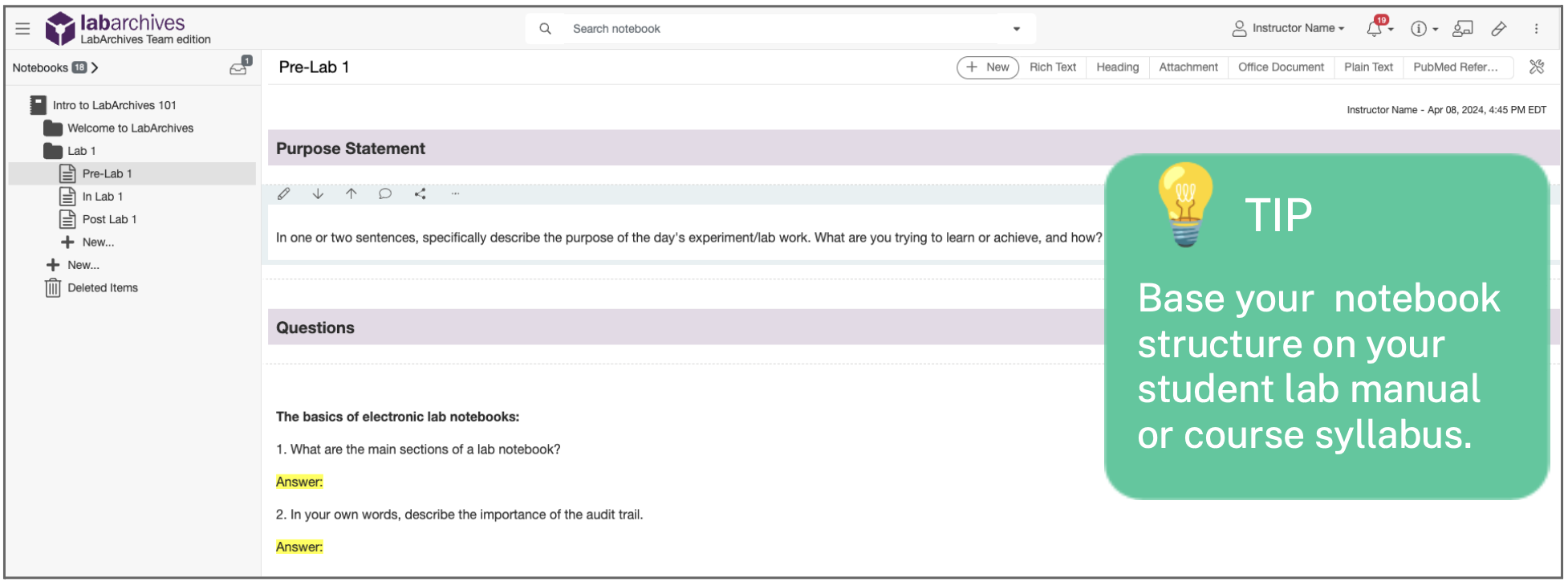 - If you are prompted to select how you plan to use LabArchives, select I’m an instructor and follow these steps to create your course.