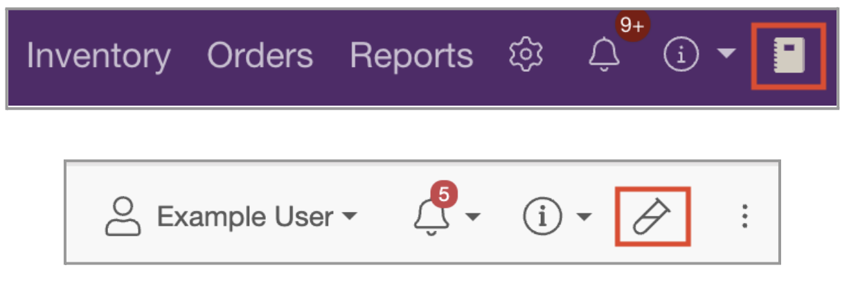- If you already have a LabArchives ELN account, you can click the Test Tube icon from your notebook to access Inventory.