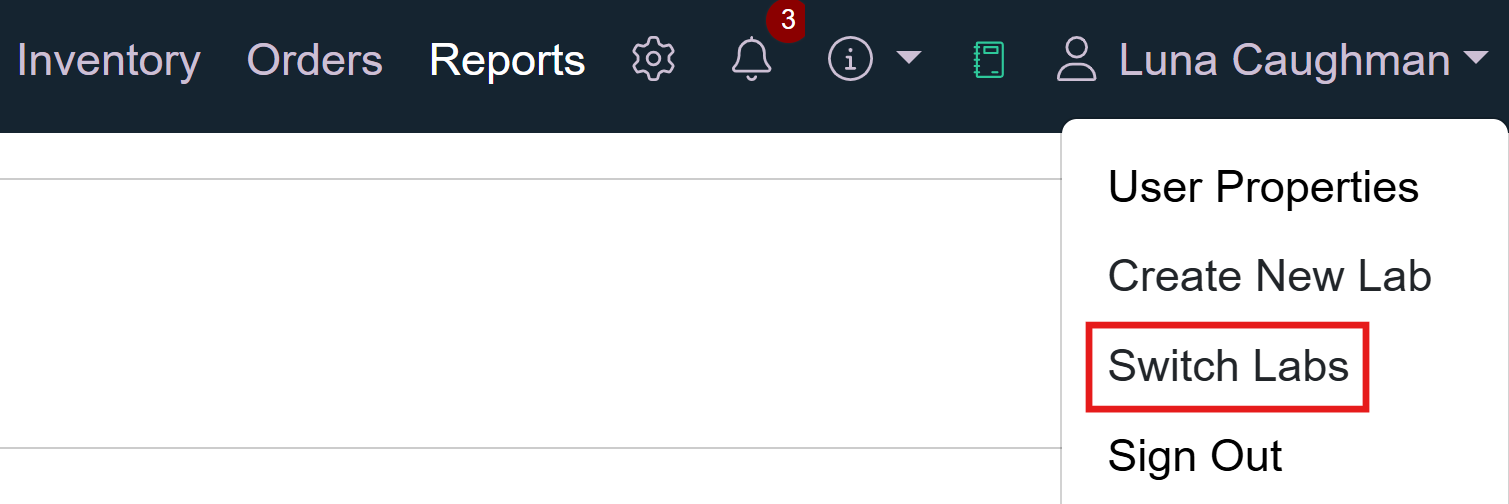 If you are a member of multiple Labs, you can easily switch between them at any time by clicking your name in the menu bar and selecting Switch Labs. From the My Labs window, select the Lab to be automatically directed to its landing page.